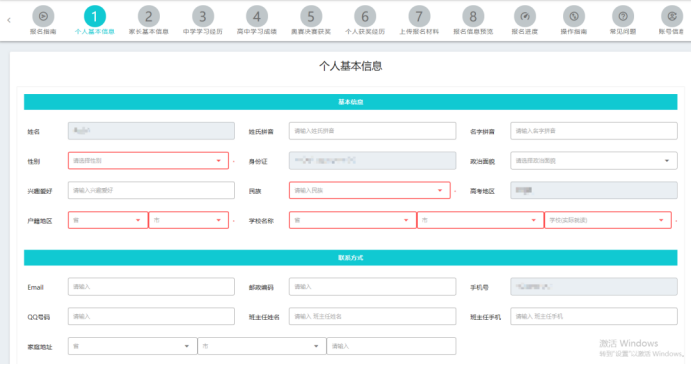 注册账号并完成登录后,考生按照报名系统顺序依次录入信息和上传材料。