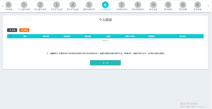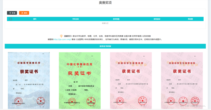 录入奥赛获奖经历,并上传证书扫描件。