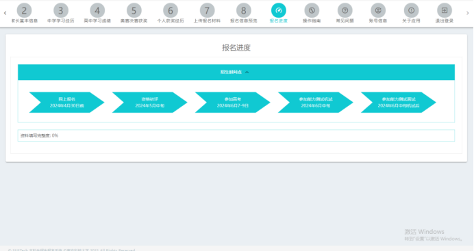 至此,报名工作完成。在报名进度页和报名系统右上方会显示报名资料完整度。