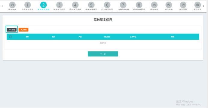 点击“新增”按钮,录入家长信息。