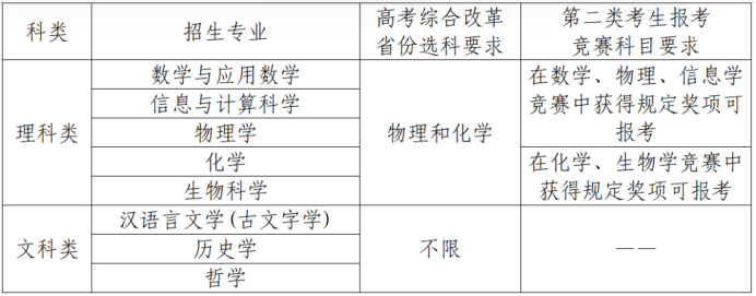 第二类:相关学科领域具有突出才能和表现的考生,且高中阶段须在数学、物理、化学、生物学、信息学任一学科奥林匹克竞赛中获得全国决赛二等奖及以上奖项。