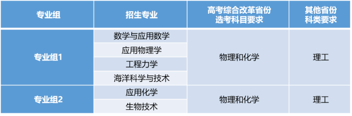 学校强基计划招生专业、选考科目、科类要求见下表: