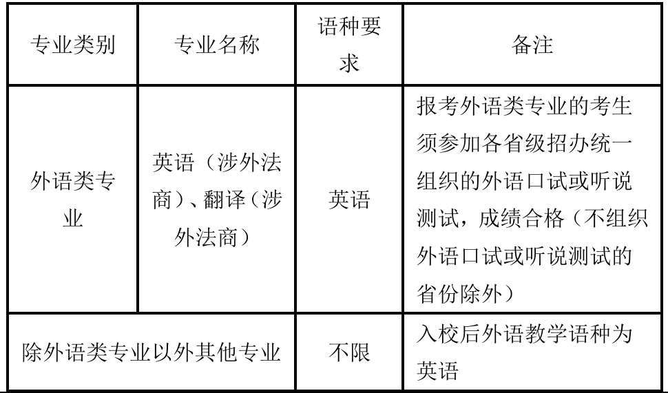 学校本科招生专业对入学外语考试的语种要求如下: