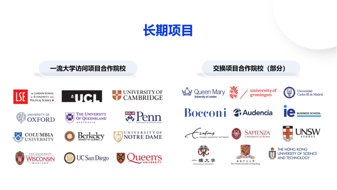 其中国内升学的学生绝大多数进入清华、北大、复旦、上海交大、中国人大、本校等双一流高校,境外升学的学生中有近20%的学生进入全球顶尖高校,超过80%学生进入全球排名前100的高校深造。