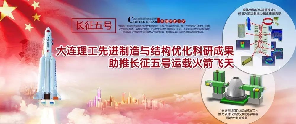 大连理工大学在先进制造、结构优化等领域的多项科研成果应用于长征五号运载火箭,为助推长征五号运载火箭飞天作出了重要贡献。